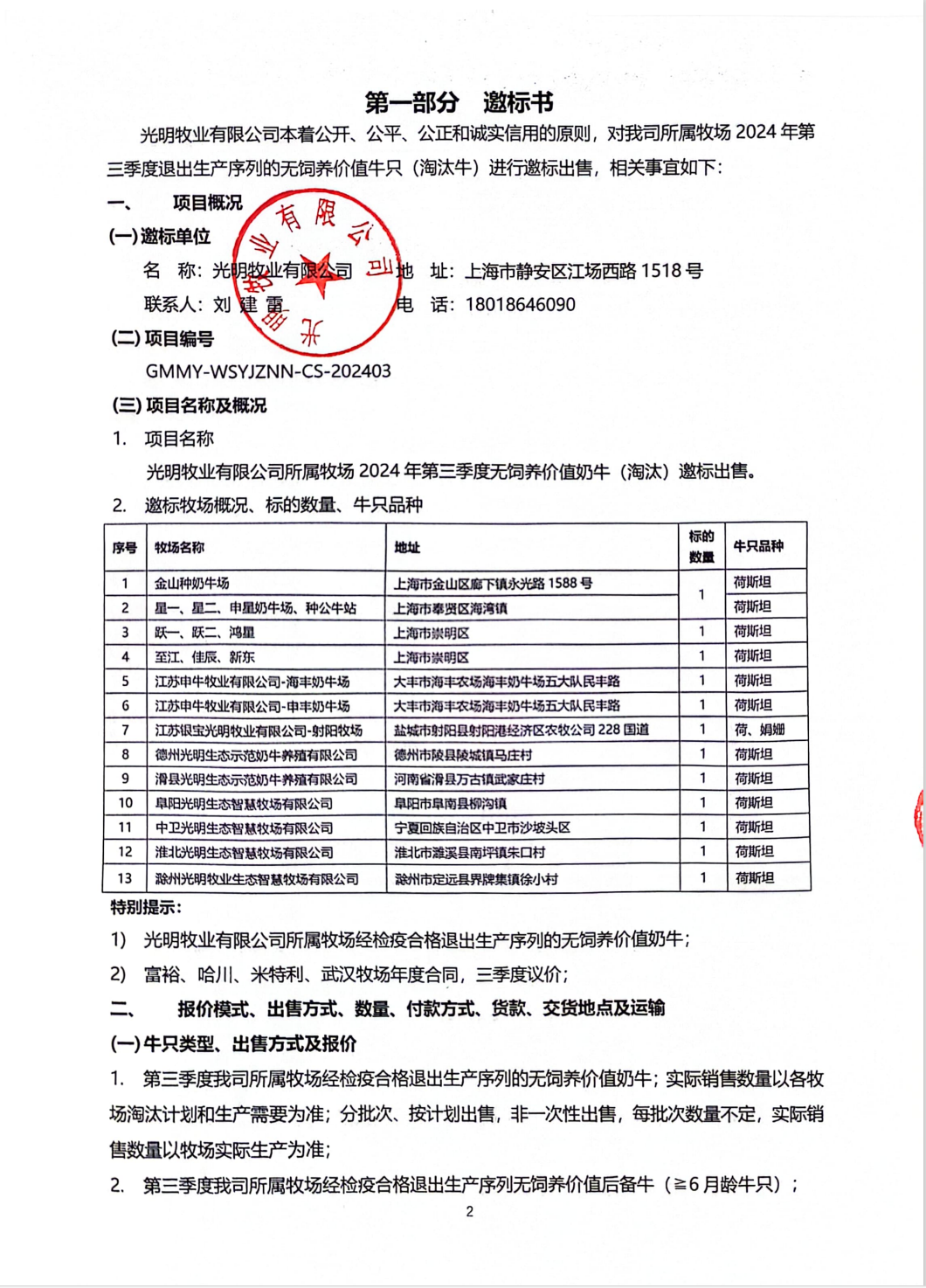 附件:利来w66牧业有限公司2024年第三季度无饲养价值牛只出售邀标书